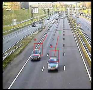 Video-based vehicle detectors are installed at every traffic intersection. By detecting and following all vehicles passing by, they can calculate the traffic volume according to a virtual counting gate.